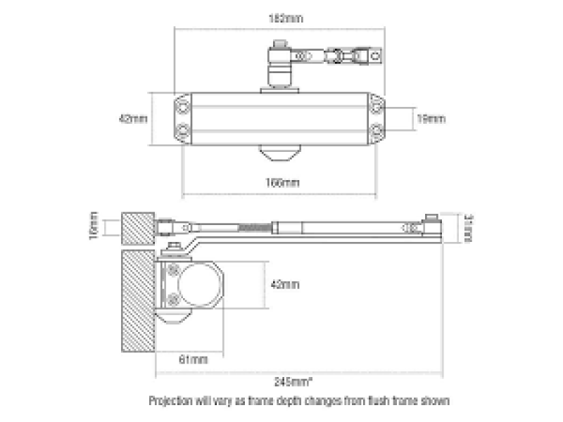 • Fixed size 3 rack and pinion door closer